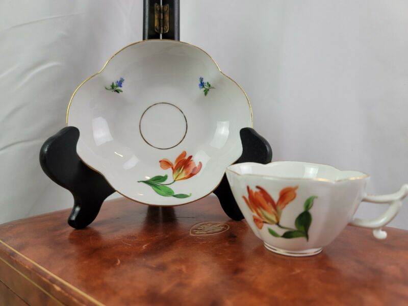 Hand Painted Meissen Porcelain Demitasse Cup And Saucer