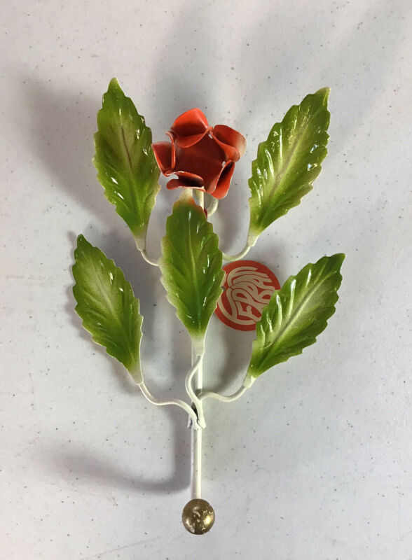 Title (ebay affiliate link): Vintage Tole Metal Flower Leaves Painted Enamel Wall Hook Italy w/Ferbat Tag