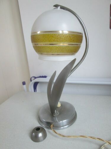 Vintage 40/50''s chrome flower table lamp with glass shade