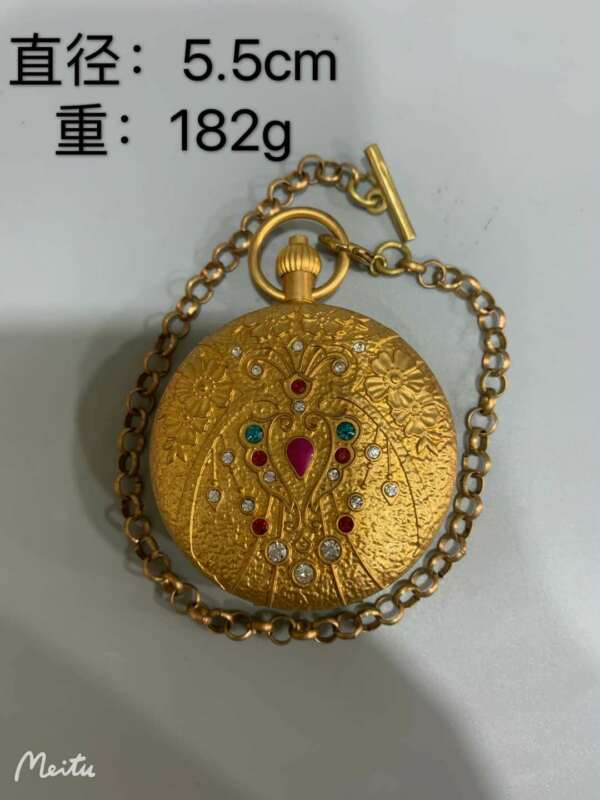 Title (ebay affiliate link): Chinese Gilt Copper Hand-made Inlaid Rhinestones Pocket Watch Two Open 10178