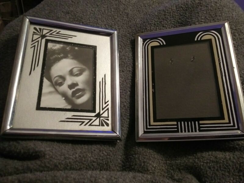 2 Vintage Reverse Painted Deco Frames 5"x4" NR!