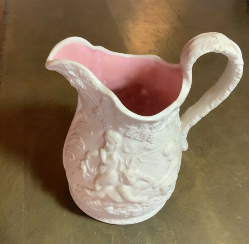 Title (ebay affiliate link): Signed Bisque Porcelain Cherub Design Milk Pitcher With Pink Inside Glaze