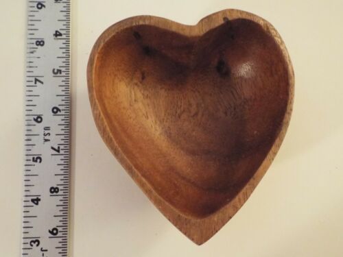 VINTAGE SMALL WOODEN HEART-SHAPED BOWL-TRINKET HAND-CARVED WOOD DISH-RARE-5" *
