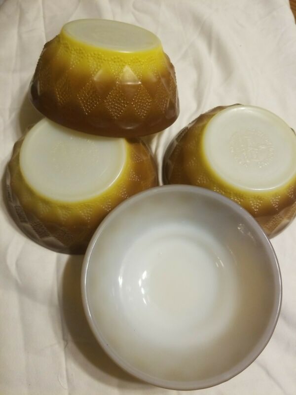 Title (ebay affiliate link): VINTAGE FIRE KING BROWN YELLOW KIMBERLY DIAMOND POINT 5" BOWLS ANCHOR HOCKING