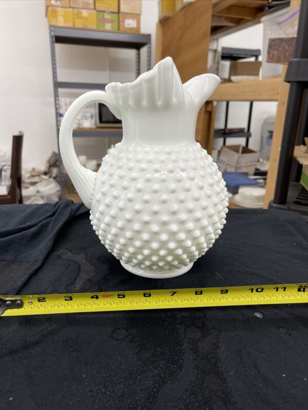 Title (ebay affiliate link): Fenton Vintage White Milk Glass Hobnail Ruffled Edge Pitcher Signed