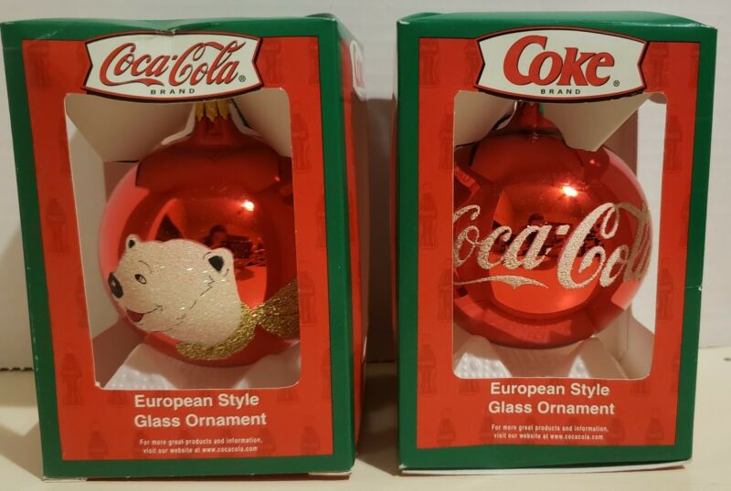 Title (ebay affiliate link): 1998 Kurt Adler 2 Coca Cola Glass Ball Christmas Ornaments with Polar bear