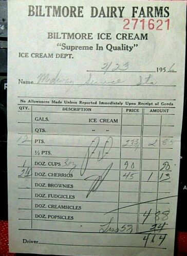 Title (ebay affiliate link): 1956 BILTMORE DAIRY FARMS ICE CREAM MIDWAY SERVICE STATION ASHEVILLE NC 4x9