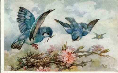 VINTAGE ART postcard: BLUETIT BIRDS by M BOWLEY