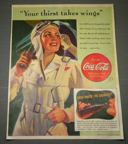 Title (ebay affiliate link): Coca Cola Airplane Girl Pilot Your Thirst Takes Wings 1940''s War Era Magazine Ad