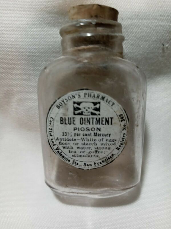 Antique Boyson''s Pharmacy Blue Ointment Poison Bottle