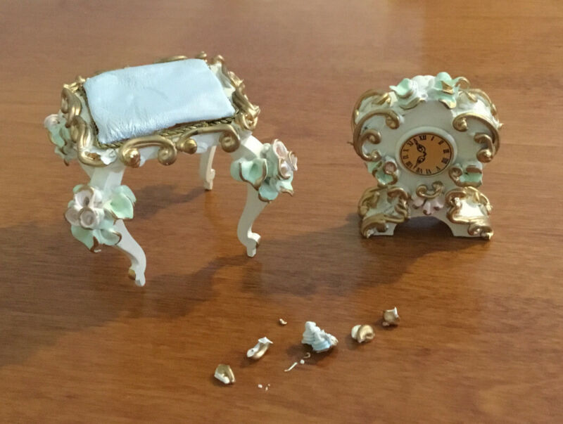 Title (ebay affiliate link): SPIELWAREN GERMAN MANTEL WOOD CLOCK & OTTOMAN DOLL HOUSE FURNITURE VINT As Is