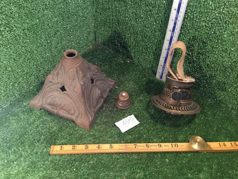 Vintage Art Nouveau Cast Metal Base Lamp & Brass Burner