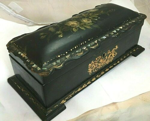 Title (ebay affiliate link): Needs Restoration Victorian Papier Mache Mother of Pearl Work Box