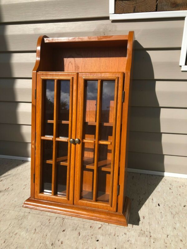 Title (ebay affiliate link): Vtg wood glass doors mini curio cabinet wall or table top 3 shelf display 448