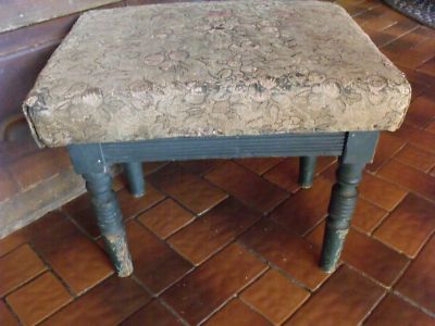 Title (ebay affiliate link): Primitive Rustic Antique Painted Wood Padded Footstool