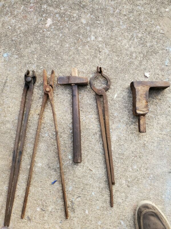 Title (ebay affiliate link): Blacksmith stump anvil cutting chisel and tongs