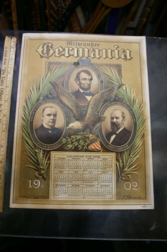 1902 Abraham Lincoln Garfield McKinley Milwaukee Germania Calendar Sheet! JSH