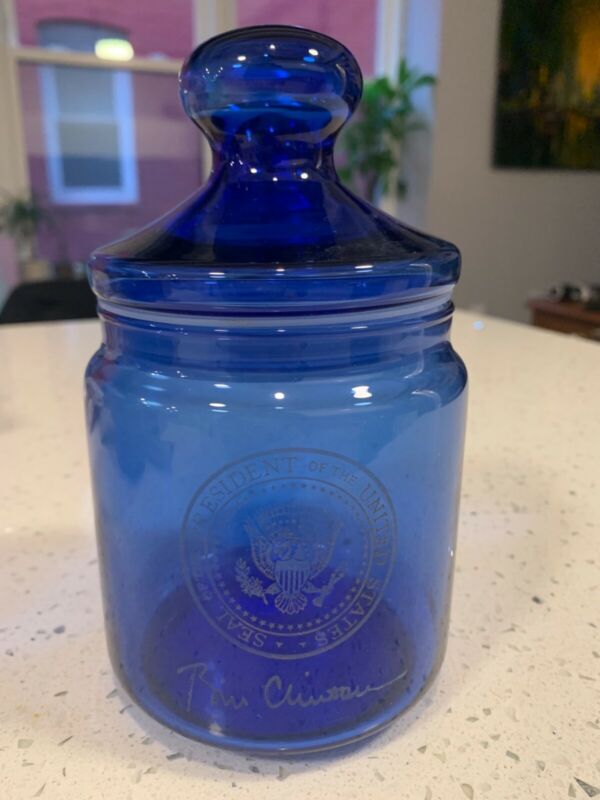 Title (ebay affiliate link): New Bill Clinton Presidential Seal Candy Jar in blue with signature