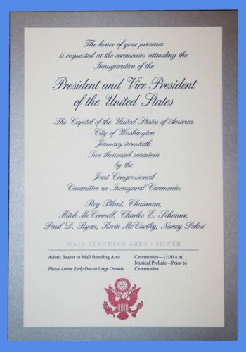 Title (ebay affiliate link): OFFICIAL Donald Trump 2017 Inauguration Invitation Silver Ticket Stub W Map Back