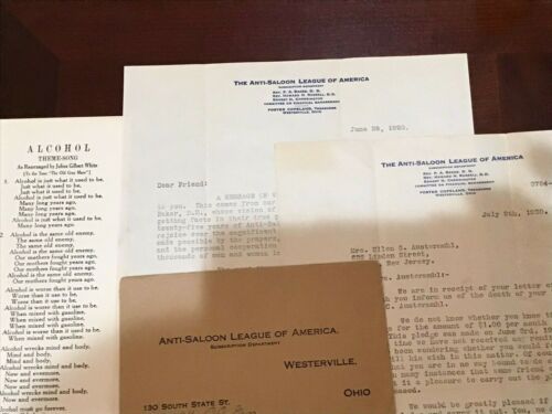 Title (ebay affiliate link): ALCOHOL (PROHIBITION) THEME SONG + ANTI SALOON LEAGUE LETTERS TO PLEDGE WIDOW