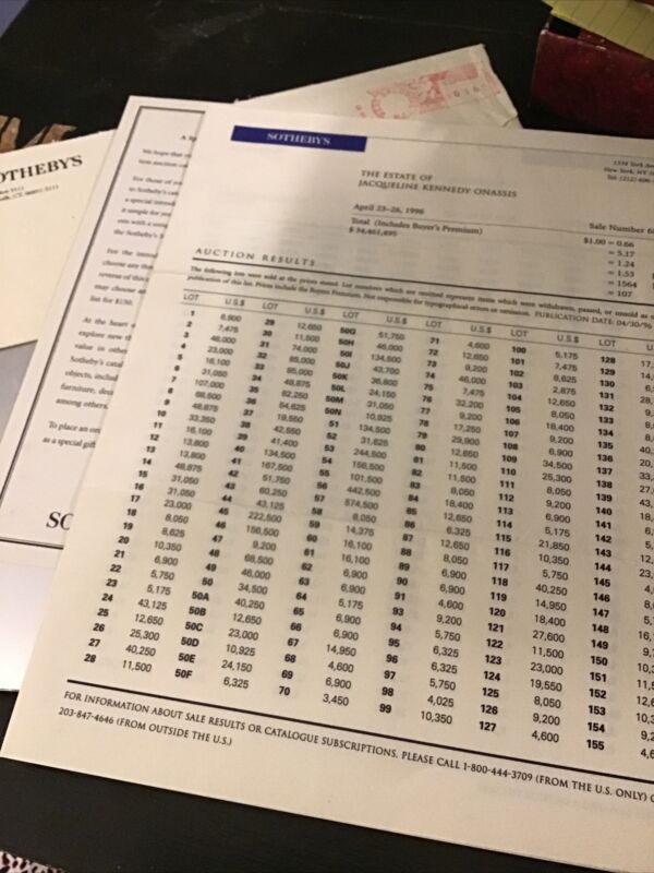 Jacqueline Kennedy Onassis Sothebys Auction Results Of Her Estate1996
