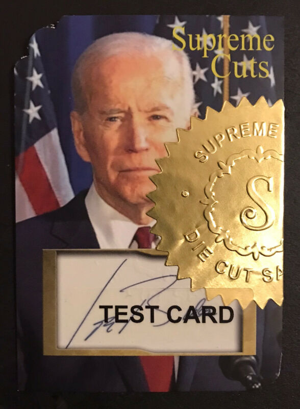 Title (ebay affiliate link): Joe Biden 2020 Supreme Cuts Gold Seal TEST CARD DIE-CUT Trading Card