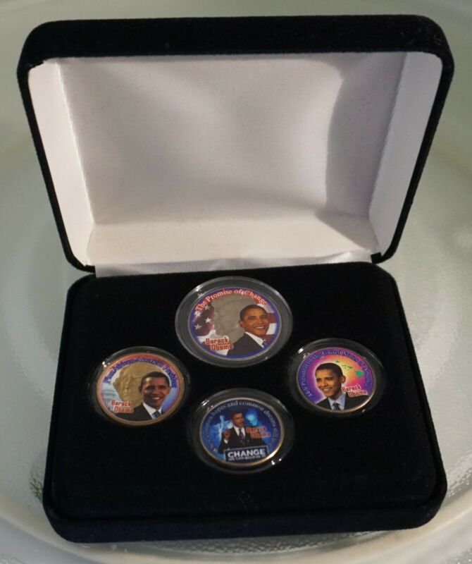 Title (ebay affiliate link): The Obama Change Collection. Set of 4 Coins. First Commemorative Mint Inc. NIB
