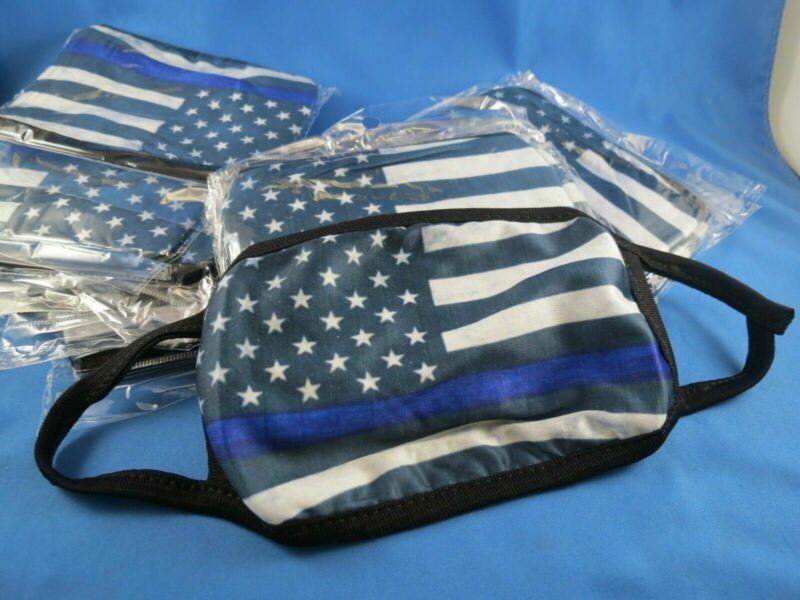 WHOLESALE LOT OF 12 BLUE LINE FLAG FACE MASK SUPPORT POLICE LIVES MATTER TRUMP $
