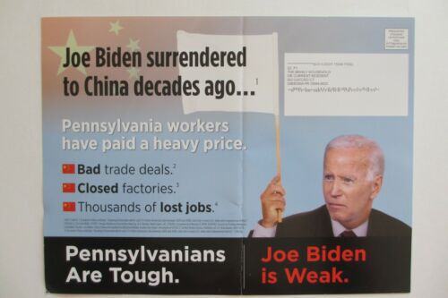 Large Anti Joe Biden 2020 Postcard From PA-Biden Surrendered To China
