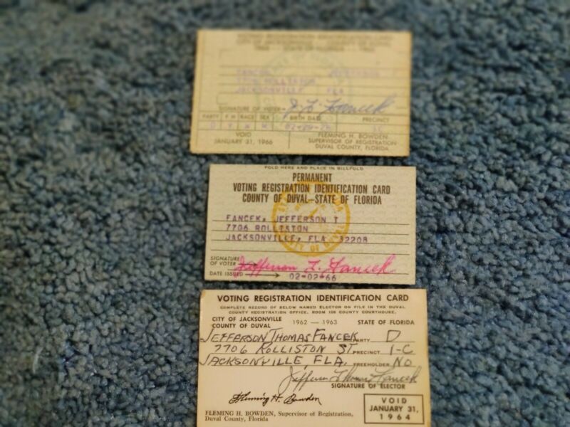 Title (ebay affiliate link): Three voting registration identification cards 1963 - 1966 Jacksinville fl
