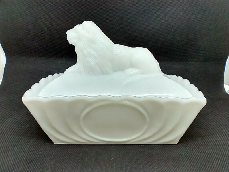 Title (ebay affiliate link): EAPG Eagle Glass Co Lion Covered Mustard 1899 Opaque White Milk Glass