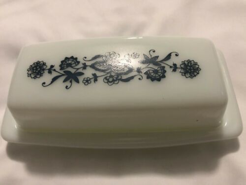 Vintage Pyrex Milk Glass Old Town Blue Onion Butter Dish with Lid