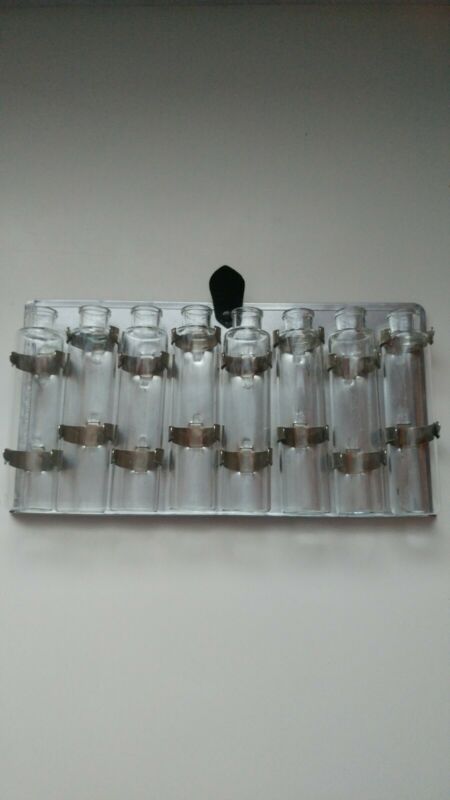Vtg Glass Apothecary Bottles & Aluminium Display Stand (one bottle broken bottom