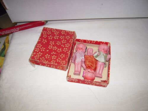 THREE Painted Jointed Bisque Dolls w/Molded Hair, Made in Occupied Japan in box