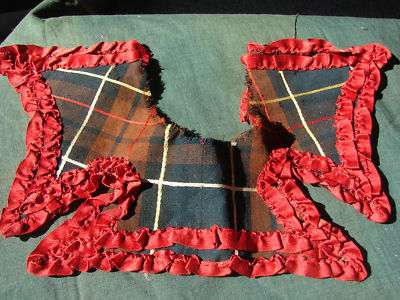 Antique Tartan Silk Ribbon Baby Bebe Doll Dress Collar