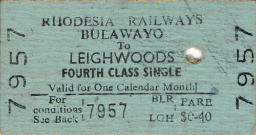 Title (ebay affiliate link): Railway tickets Rhodesia RR Bulawayo to Leighwoods fourth class single 1978