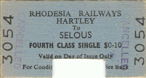 Title (ebay affiliate link): Railway tickets Rhodesia RR Hartley Selous fourth class half fare single unused