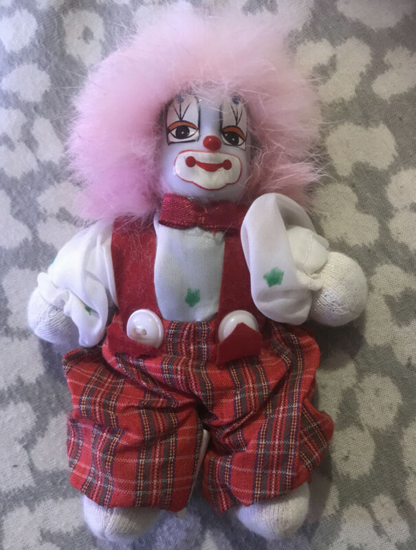 Title (ebay affiliate link): Vintage Porcelain Head Clown Doll-Sand Filled Hand Painted Face W/Plaid Outfit