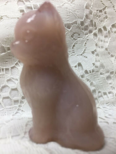 Title (ebay affiliate link): Pink Milk Crown Tuscan glass Cat Kitten paperweight kitty Miss Cotton opaque art