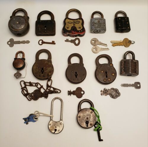 Title (ebay affiliate link): NICE LOT 12 ANTIQUE PADLOCKS W/ KEYS TROJAN REESE MILLER FRAIM SAFE EAGLE ILCO