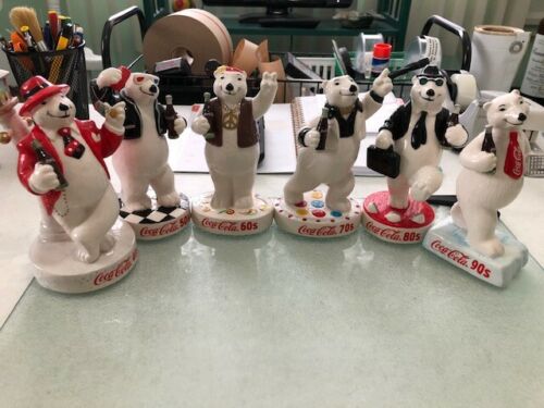 SET OF 6 COCA-COLA CERAMIC POLAR BEAR FIGURINES - 40''S, 50''S, 60''S, 70''S, 80''S,