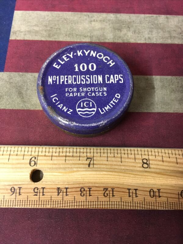 Title (ebay affiliate link): Eley Kynoch No. 1 Percussion Cap Tin vintage antique Container Shotgun