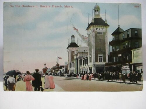 1908 POSTCARD ON THE BOULEVARD REVERE BEACH MA