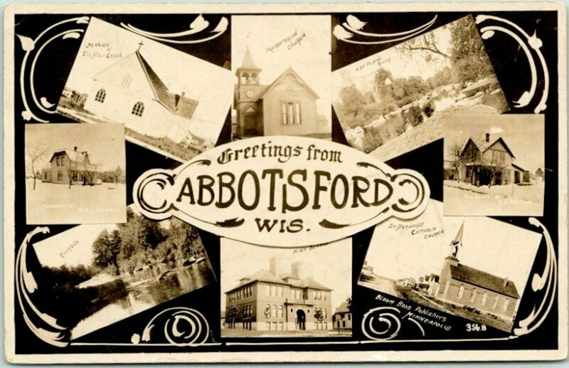 Title (ebay affiliate link): ABBOTSFORD, Wisconsin RPPC Photo Postcard Multi-View School Church 1909 Cancel