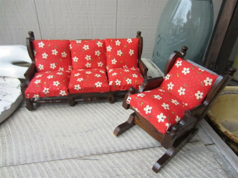Title (ebay affiliate link): Vintage Dollhouse Doll Furniture Wooden Couch Chair w/ Flower Fabric Cushions
