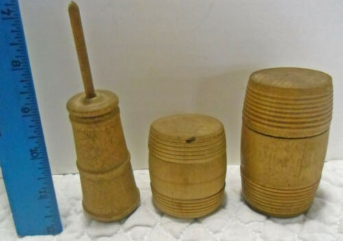 Title (ebay affiliate link): 2 Wooden Miniature Barrels Turner Maine Butter Churn Vintage Antique Furniture