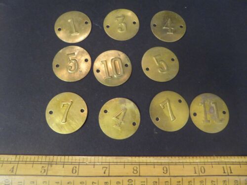 Vintage 38mm Brass pressed metal number discs - Crate numbers / retro furniture