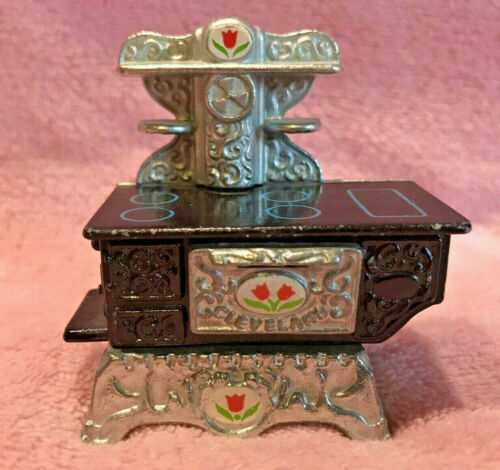 Title (ebay affiliate link): 1980 MATTEL INC CHILDS DOLL HOUSE CAST IRON CLEVELAND COOK STOVE HINGED DOOR