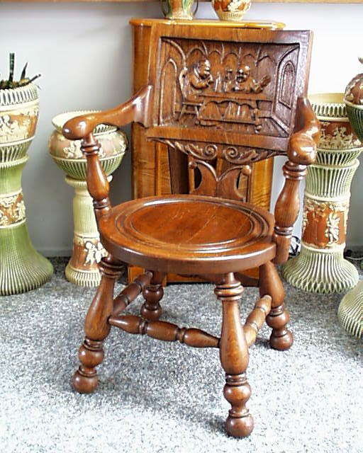 Title (ebay affiliate link): 2 of 2 Vintage Oak Friar Tuck German Tavern Pub Chair