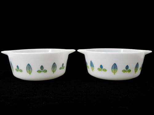 Title (ebay affiliate link): RARE PYREX 472 TWIN SERVING SET VINTAGE BLUE / GREEN LEAVES - 1959